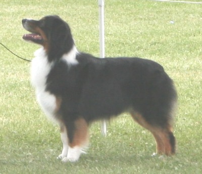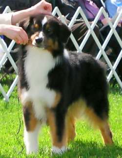 "Simon" (CH. Blue Isles The Critics Are Raving x CH.Terra-Blue Frequent Flyer DNA-CP) ![]() Simon truly epitomizes the all purpose dog. Wether it be the nightly "putting the ducks "to bed", pushing the neighbors cattle back when the fence goes down or helping out as we do chores around the yard, Simon loves to be in the midst of it all. The consummate showman, Simon has inherited the "I'm special gene" that has come down through the generations of his pedigree. With his effortless movement, impeccable foot timing and his ring presence that demands attention, Simon has pointed or reserved every weekend he has been shown. Watching him trot around the yard with his litter mates as a puppy, I would think, "I need a black tri dog like I need a hole in my head". Now, he has matured into the yardstick that we now measure all males to. 3/10/05 WD & BOW for 2 points (AKC) - Marietta, OH 3/11/05 WD & BOW for 2 points (AKC) - Marietta, OH 3/12/05 RWD (AKC) - Marietta, OH 3/25/05 WD, BOW (AKC) - Edison, OH 5/05 RWD (ASCA) - Breeder Judge: Janet White 8/05 WD, BOW & BOS over 4 special dogs - Canfield, OH
